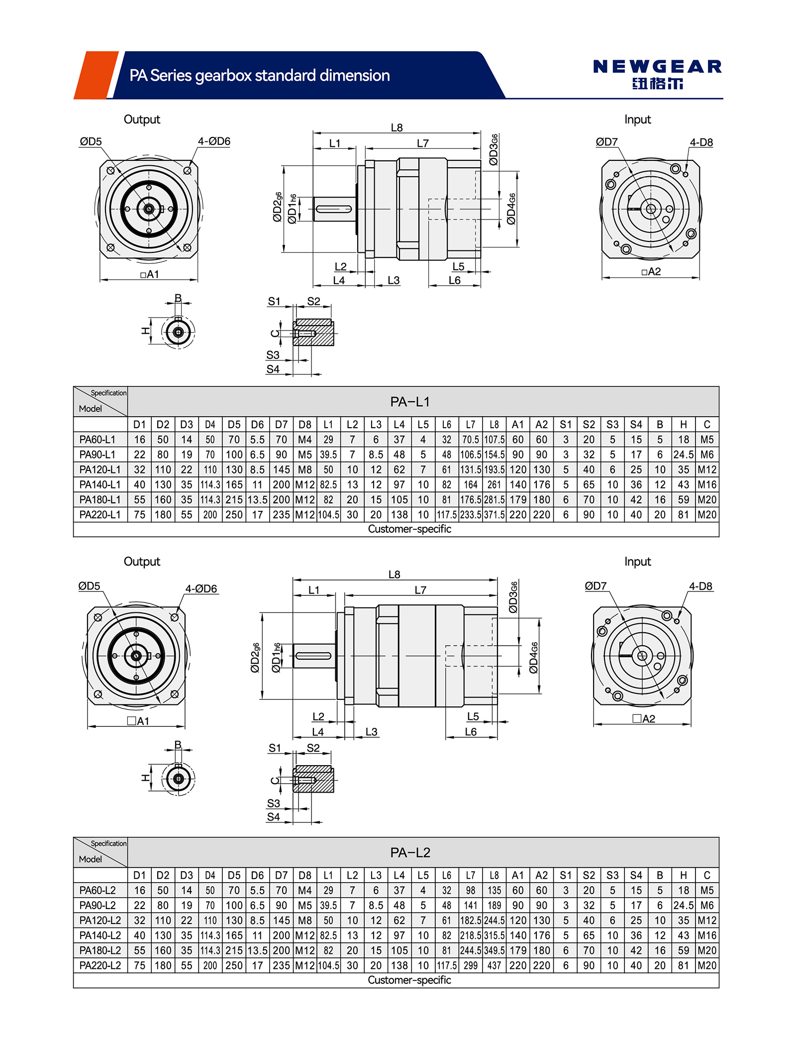 | พารามิเตอร์ทางเทคนิค | ซีรี่ส์โมเดล | PA60 | PA90 | PA120 | PA140 | PA180 | PA220 | ||