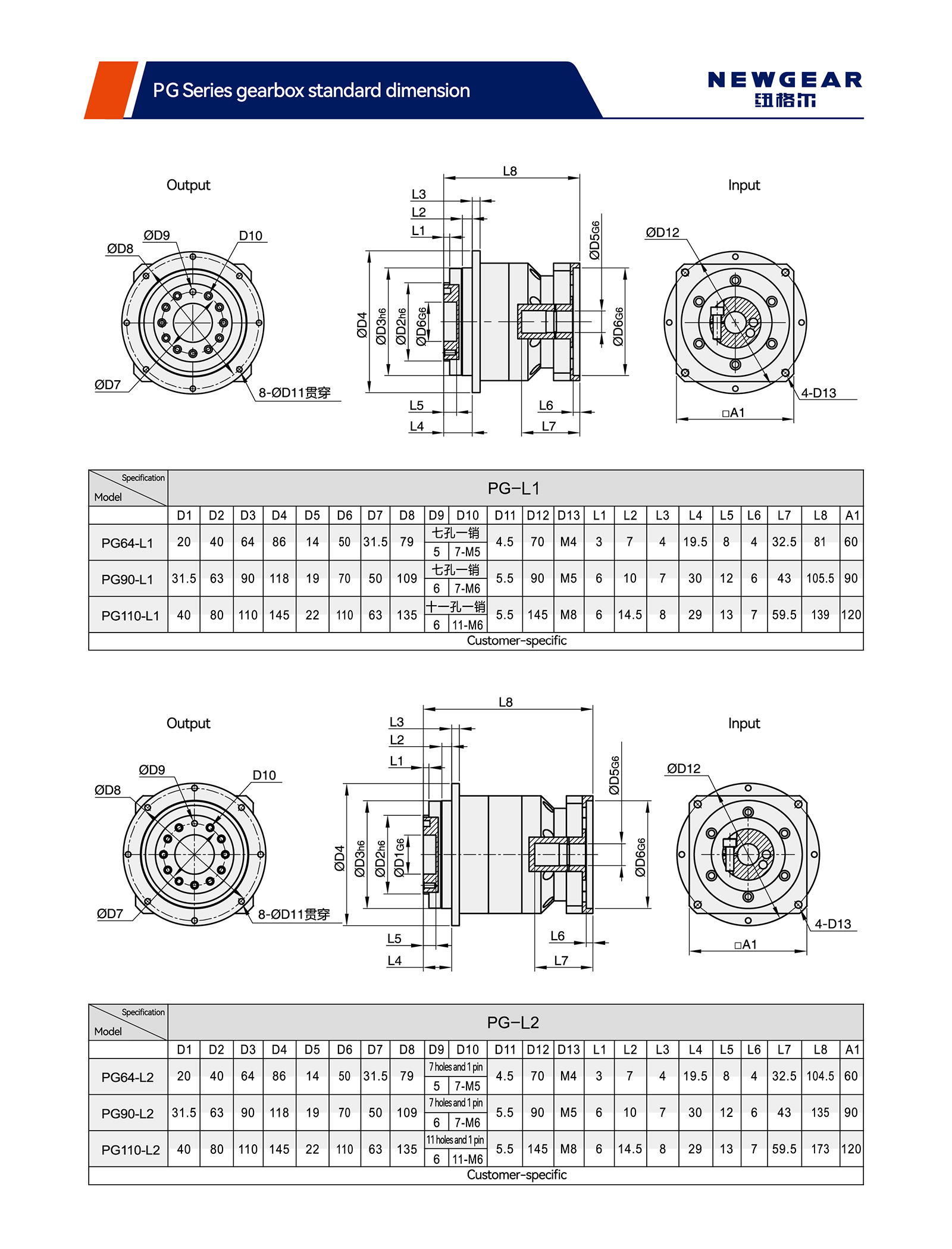 | พารามิเตอร์ทางเทคนิค | ซีรี่ส์โมเดล | PG64 | พีจี90 | พีจี110 | ||